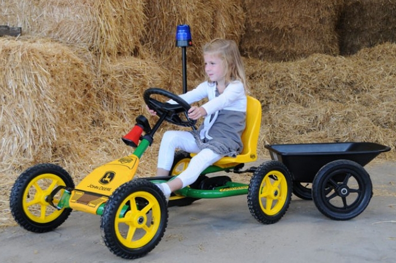 Веломобиль «Buddy John Deere» отлично подойдет для использования на приусадебном участке или на даче. У него хорошие ходовые показатели, легкая конструкция и простое управление. Яркая цветовая гамма и лейбл известной во всем мире сельскохозяйственной компании, расположенный на капоте, обязательно привлекут внимание вашего ребёнка.