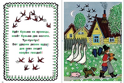 «ПЕСЕНКИ. ПОТЕШКИ» собраны из книжек, известных многим поколениям родителей и детей. Это многкратно переиздаваемые «Собака, кот, кошка и курочка», «Ерши-малыши», «Ладушки», «Чики-чики-чикалочки», «Радуга-дуга», «Небылицы в лицах» с иллюстрациями Юрия Алексеевича Васнецова (1900—1973).