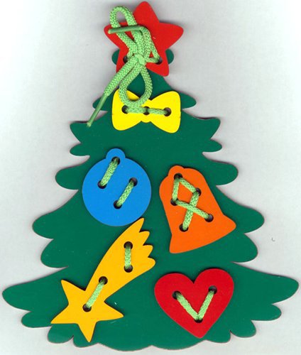 Детская развивающая игра Шнуровка Ёлочка для малышей от 3х лет.