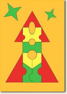 Играющему предлагается собрать эти фигуры (пазлы) в "открытку", формируя искомое изображение.