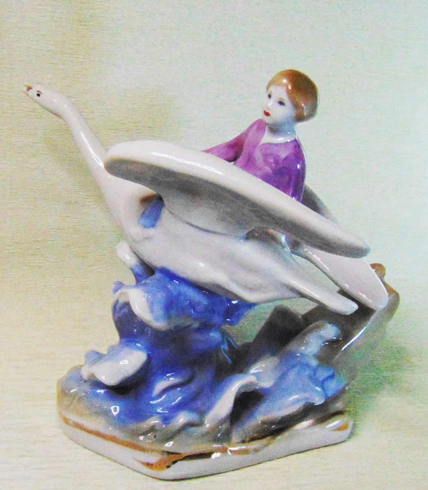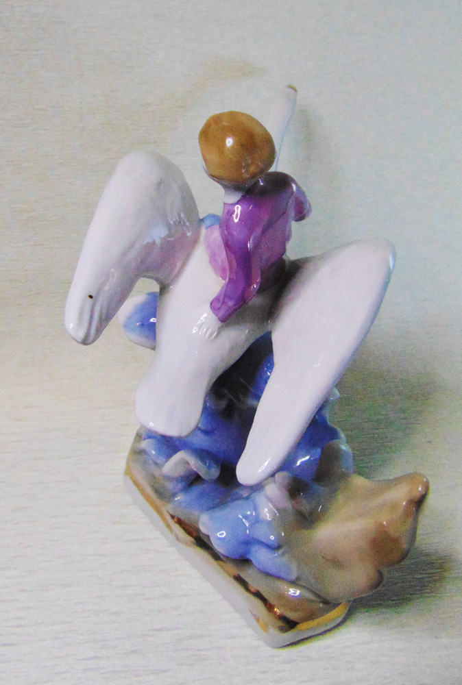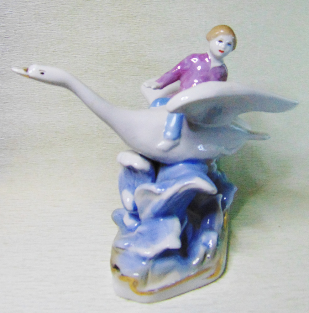 Купить Иванушка и гуси-лебеди, 15 см. Дулевский фарфоровый завод, 1966 г. Красное клеймо Дулево "1 с - 66". онлайн в интернет-магазин-детство.рф опт и розница