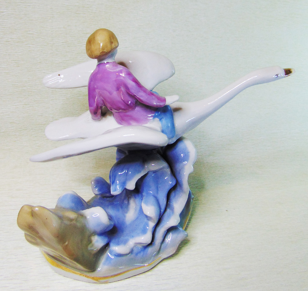 Статуэтка "Иванушка и гуси-лебеди". Высота 15 см. Дулевский фарфоровый завод, 1966 г. Красное клеймо Дулево "1 с - 66".