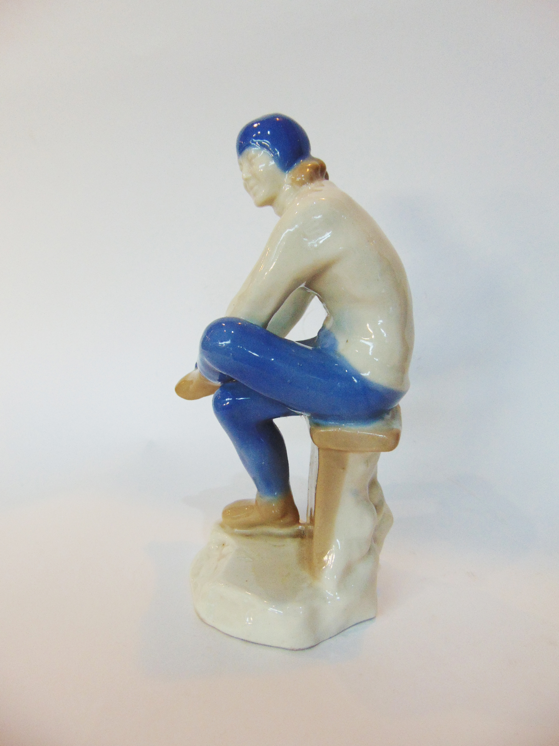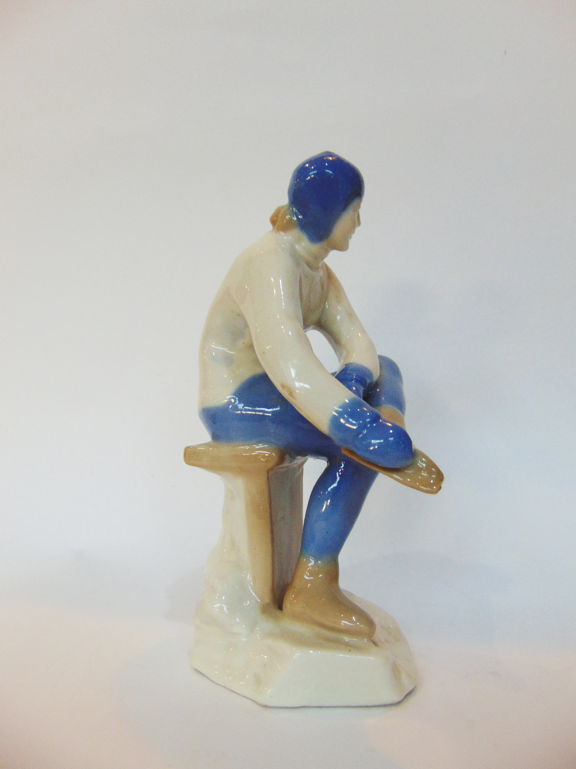 Статуэтка Конькобежка Лидия Скобликова. Высота 18 см. Артель Керамик (Полонне ЗХК), 1950-е гг. Без клейма, на донышке синяя надпись "12".