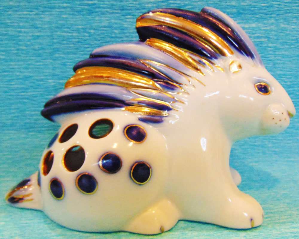 Дикообраз-карандашница, 11 см. Фарфор. СССР, 1970-е гг. Ломоносовский фарфоровый завод. Скульптор Горлов Д.В., художник Павлова Н.М. Синее клеймо ЛФЗ.