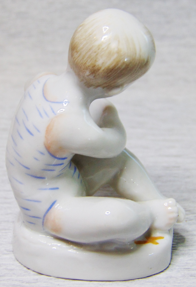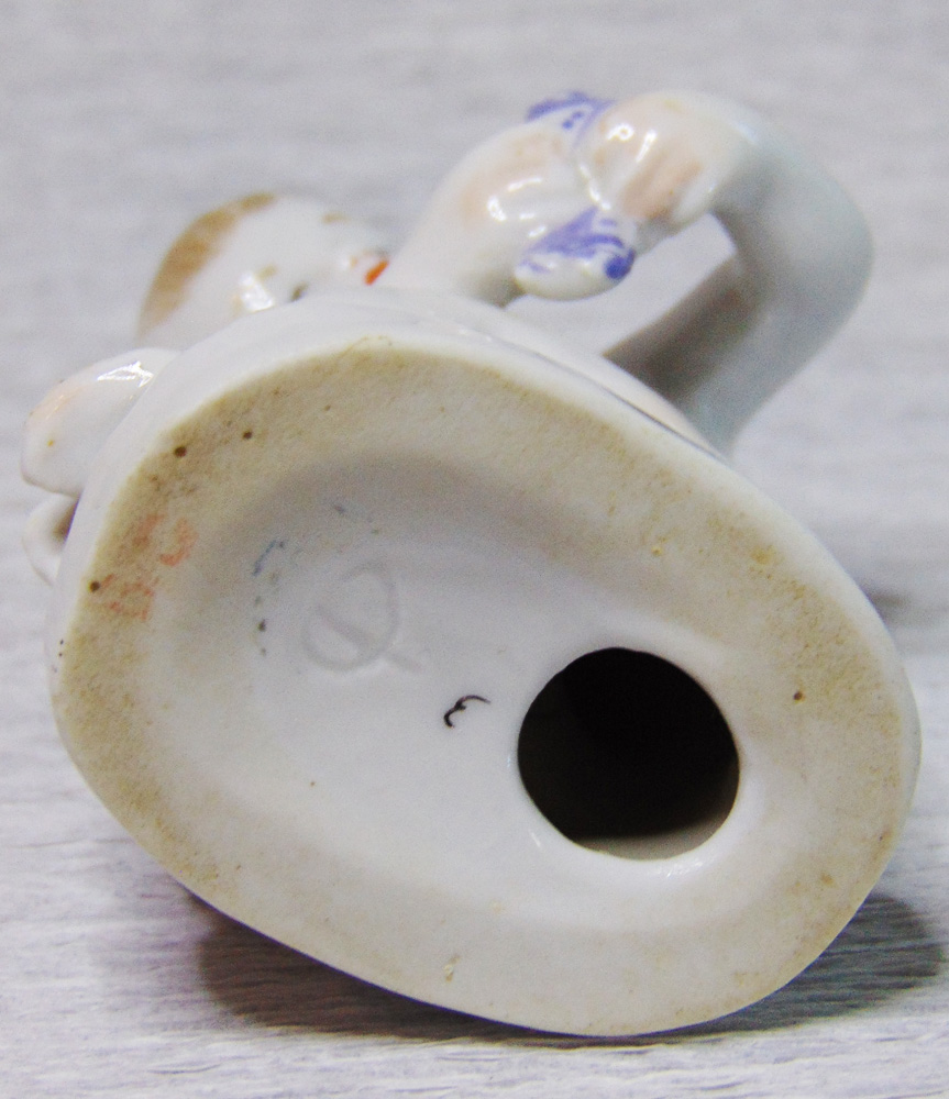 Статуэтка Мальчик с рыбкой. Высота 9 см. Ломоносовский фарфоровый завод, 1960-е гг. Ск. Стобова Г.С., худ. Косенкова К.Г. Красные буквы "В С".