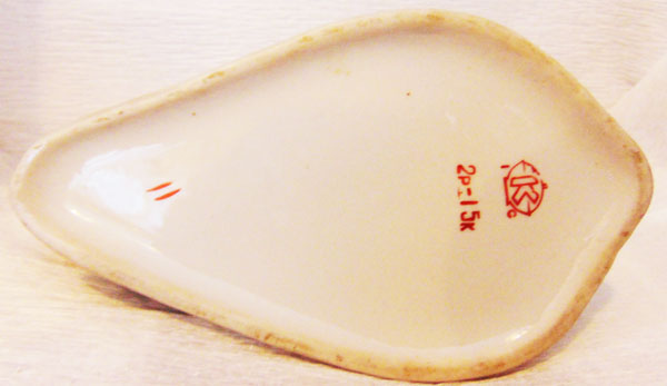 Пепельница "Рыба", 16 см. Красное клеймо Коростенского фарфорового завода с указанием на 1 сорт и кл