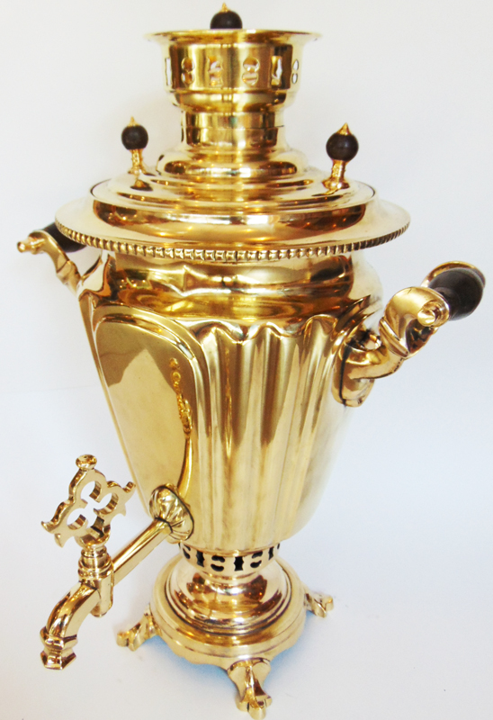 Самовар на дровах. Форма: рюмка с гранями. Материал: полированная латунь. Фабрика: Тульский патронны