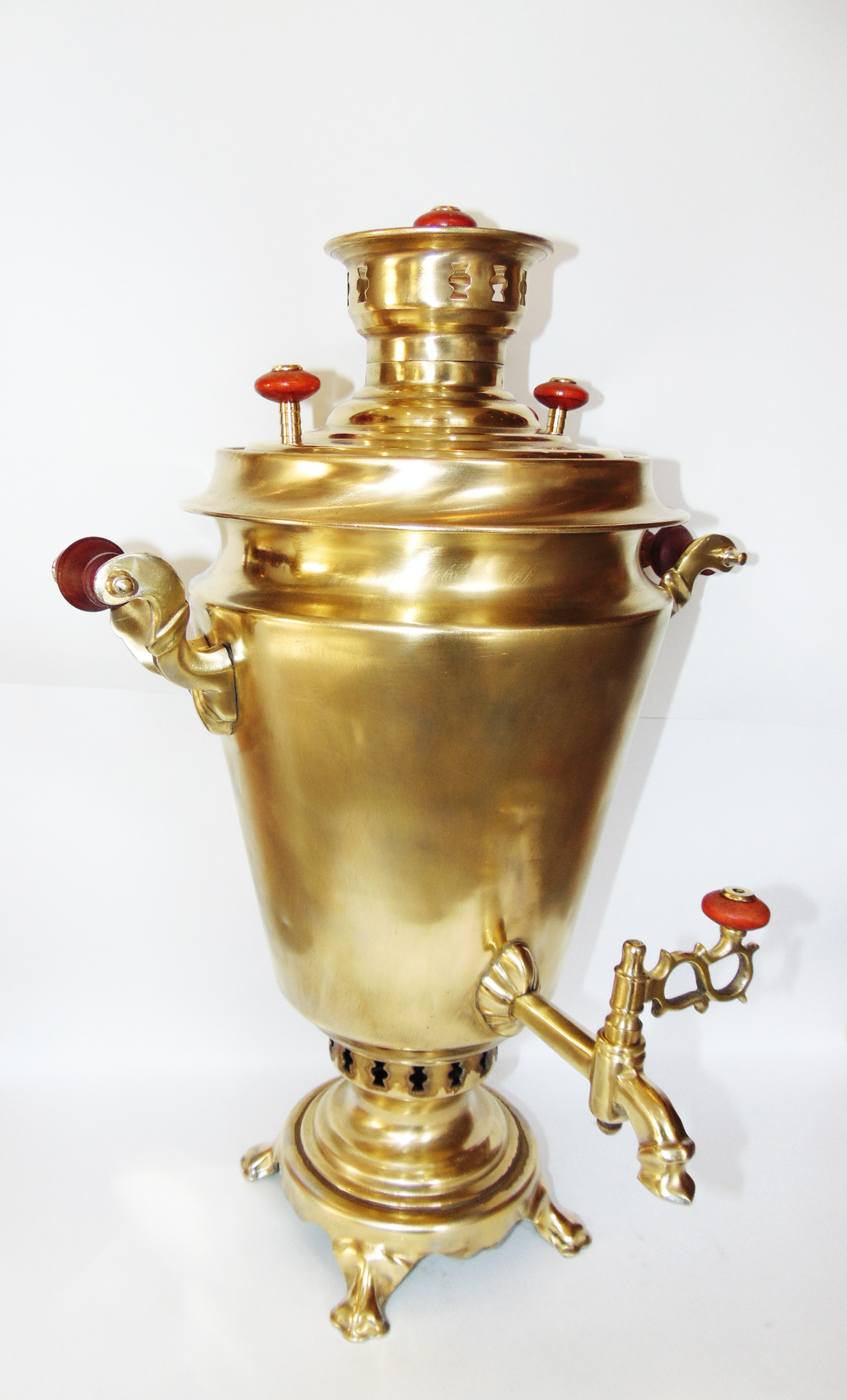 Купить Самовар тульский.Форма "гладкая рюмка". Материал: латунь полированная. Объем 6 л. СССР, Завод "Штамп" онлайн в интернет-магазин-детство.рф опт и розница