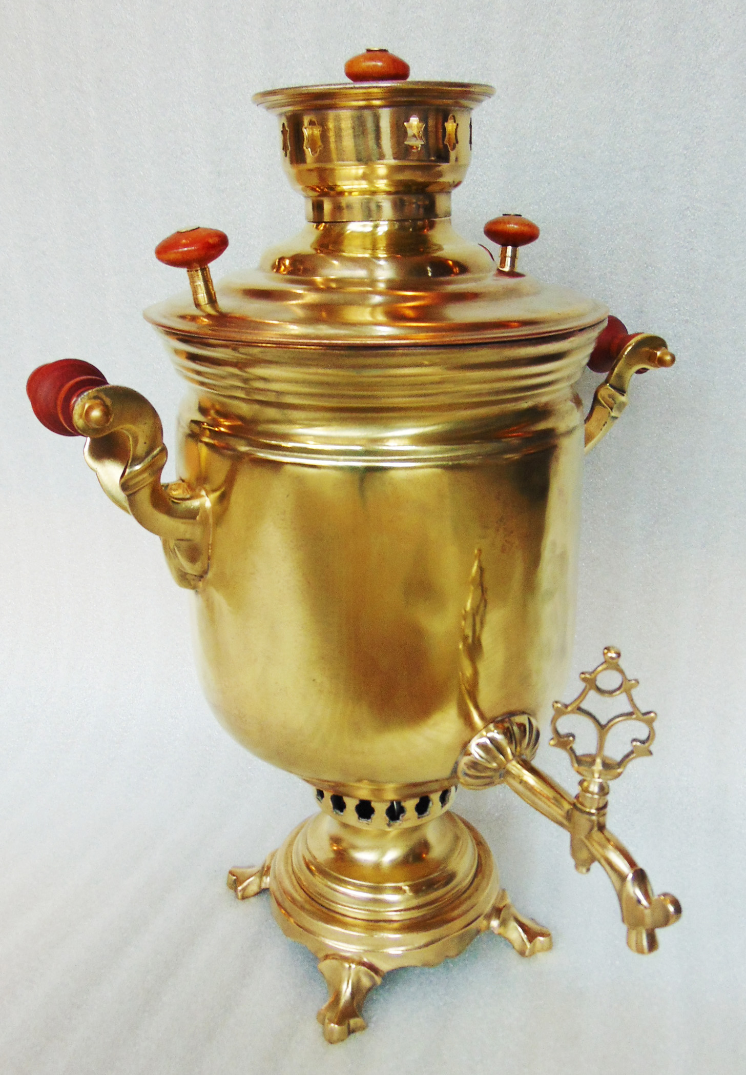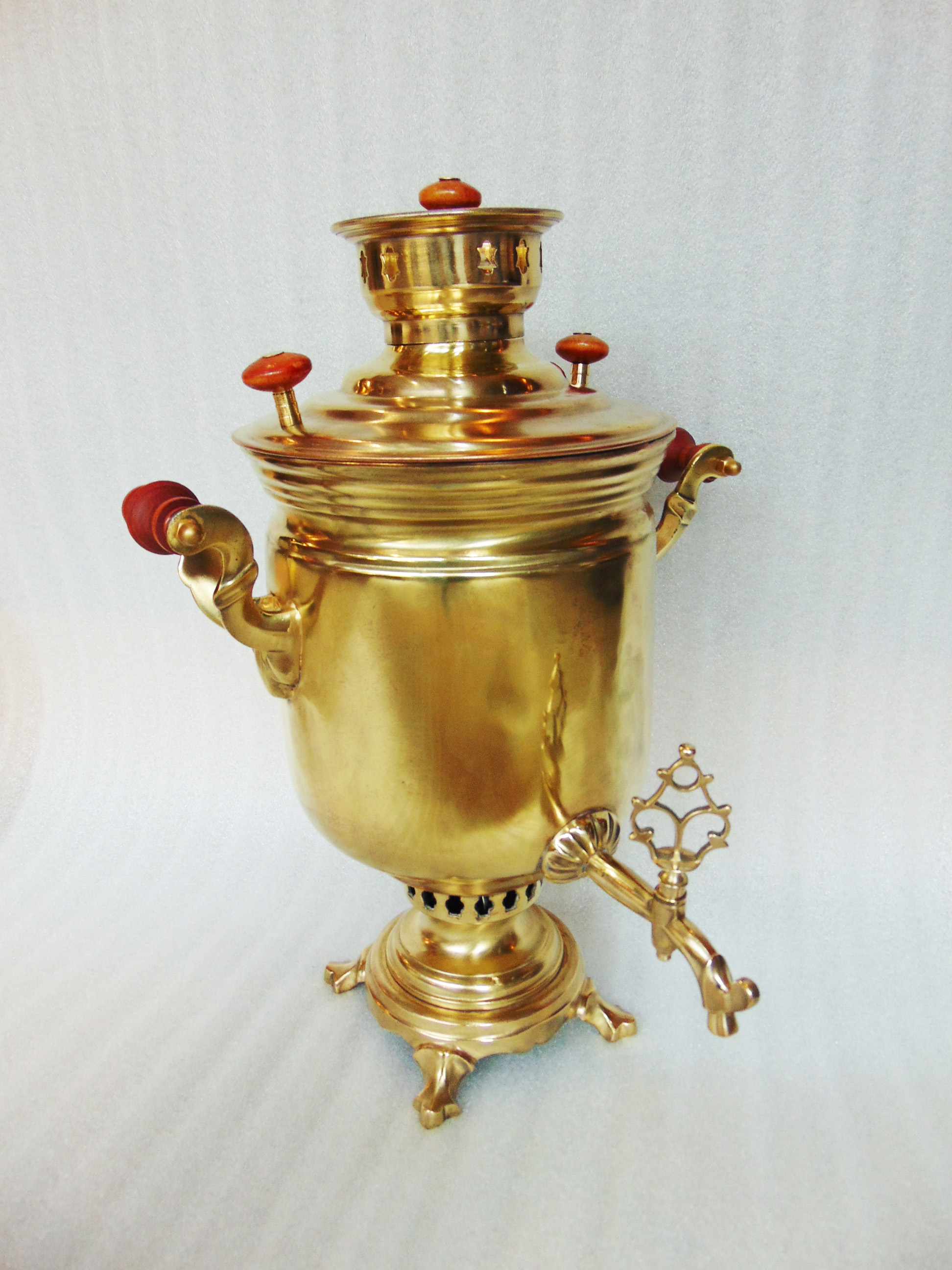 Купить Самовар тульский. Форма: банка. Материал: полированная латунь. Объем: 4,5 литра. онлайн в интернет-магазин-детство.рф опт и розница