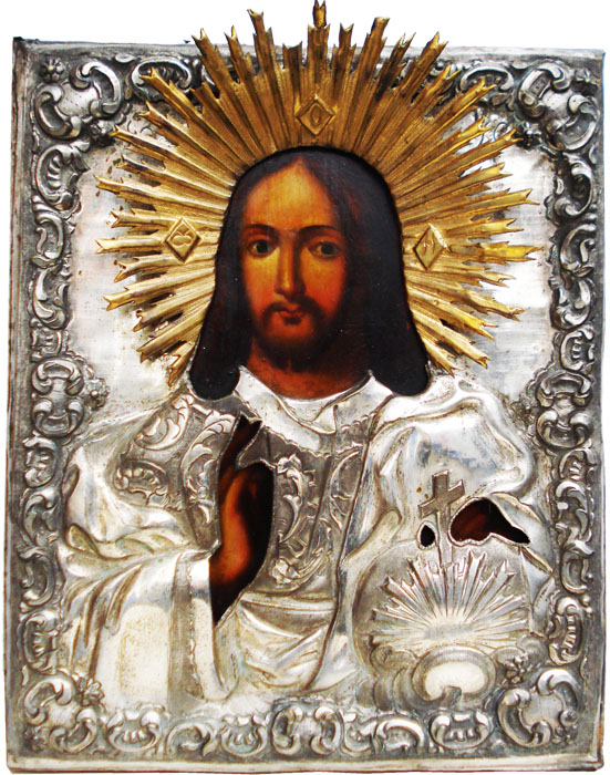 Купить Икона "Господь Вседержитель". Икона: дерево, левкас, темпера, Оклад: латунь, серебрение. онлайн в интернет-магазин-детство.рф опт и розница