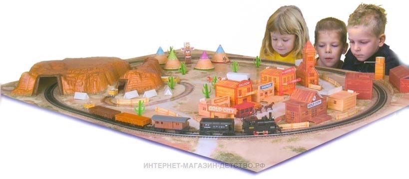 Железная дорога «MEHANO» Western train - это 3,35 метра железнодорожного полотна. Во время пути поезд минует городские улицы с жилыми и хозяйственными постройками, пригород с зарослями кактуса, глубокий тоннель через высокий горный массив. За паровозом и вагонами следят лошади, запряженные в конные экипажи, и наверное, из каждого окна следит за проезжающим составом невидимая пара глаз... Ландшафт, который интересно будет собирать, готовясь к великому путешествию, воссоздаст картину, много раз проигранную в фильмах о Диком Западе. Характеристики железной дороги «MEHANO» Western train: • масштаб 1:87; • работает от электрической сети через адаптер – 220 вольт; • возможность изменения скорости движения; • размер собранного железнодорожного полотна: 117,5 x 95,5 см; • размер ландшафта в сборе: 125 х 100 см; • ширина колеи: 16,5 мм; • размер упаковки: 82 x 57 x 10 см. Все элементы комплекта совместимы с другими сборными моделями железной дороги «MEHANO», таким образом юный машинист запросто сможет возводить новые станции, прокладывать совершенно новые маршруты, которых нет ни на одной карте, воссоздавать небывалые ландшафты, уникальные и никем не виданные ранее. В комплекте: • 1 локомотив, 4 вагона; • 3,35 метра железнодорожного полотна • рельефный ландшафт с тоннелем, домами и постройками, растениями; • сетевой адаптер; • пульт-контроллер; • подробная инструкциями по сборке и управлению (с иллюстрациями).