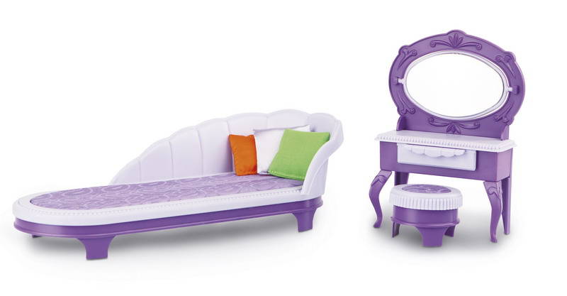 Великолепный будуар для кукол "Конфетти" фиолетового цвета превратит игрушечную любимицу каждой девочки в настоящую принцессу. Девочки с удовольствием придумают увлекательные сюжетные игры, в которых кукла в очаровательном наряде будет наводить красоту перед зеркалом. В игрушечном трюмо есть выдвигающийся ящик, в который можно положить кукольные аксессуары. Такой оригинальный будуар отлично будет смотреться в игрушечном домике для кукол.