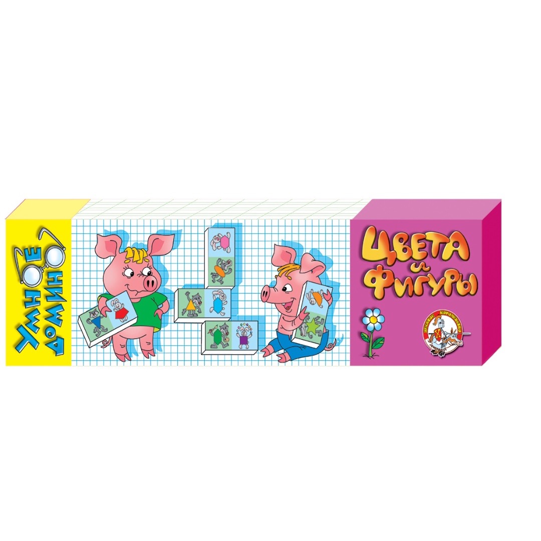 Умное домино «Цвета и фигуры» предназначено для 2-8 участников в возрасте от 4 до 8 лет. Размер картонных фишек 8х4 см.