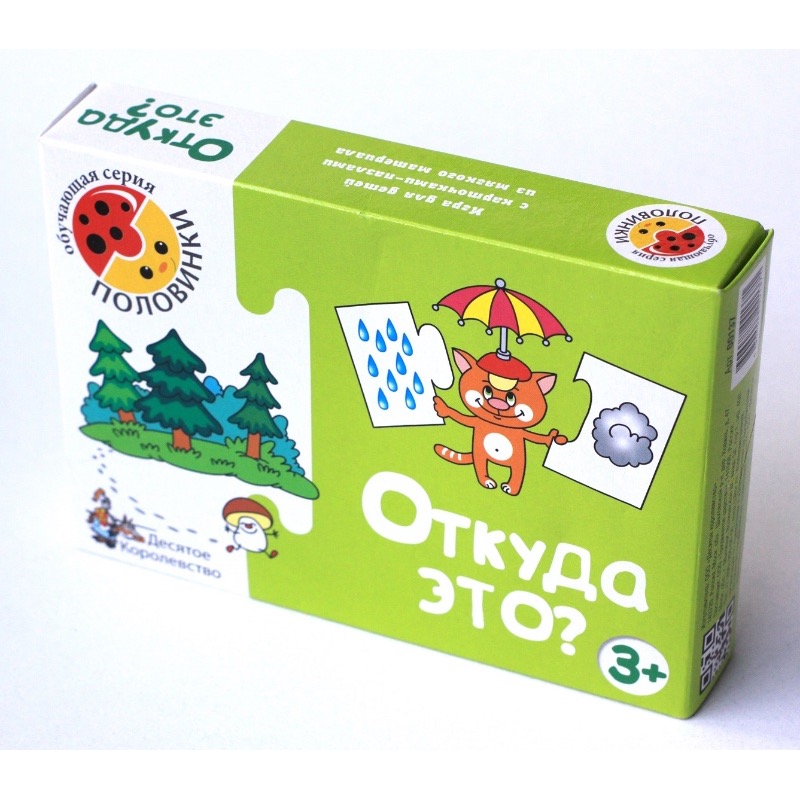 Артикул: 00137; Наименование: Игра обучающая Половинки "Откуда это?"; Штрихкод EAN-13: 4606088001371; Штрихкод EAN-14: 14606088001378; Количество штук в коробке: 26; Длина товара (см): 17; Ширина товара (см): 11,8; Пол: мальчики и девочки; Возраст: от 3-х лет до 5 лет; Вес нетто, кг: 0,09; Сертификат: RU C-RU. ЛТ47.B.04261 №0629875; срок действия: 29.05.2021; Описание товаров: Игра предназначена как для занятий с одним малышом, так и с группой от 2 до 4 человек.