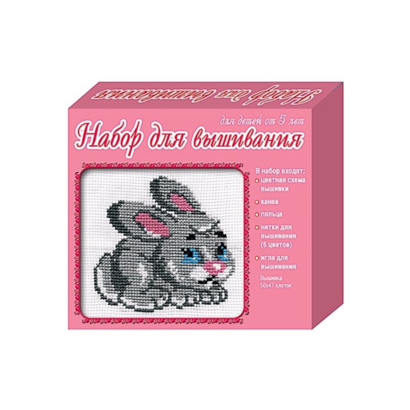 Артикул: 00307; Наименование: Набор для творчества. Вышивка "Зайка" (с пяльцами); Штрихкод EAN-13: 4606088003078; Штрихкод EAN-14: 14606088003075; Количество штук в коробке: 14; Длина товара (см): 20,5; Ширина товара (см): 17,6; Пол: девочки; Возраст: от 5 лет до 7 лет; Вес нетто, кг: 0,11; Сертификат: RU C-RU. ЛТ47.B.04263 №0629877; срок действия: 29.05.2021; Описание товаров: В набор для вышивания крестиком с пяльцами и иглой «Зайка» входят: