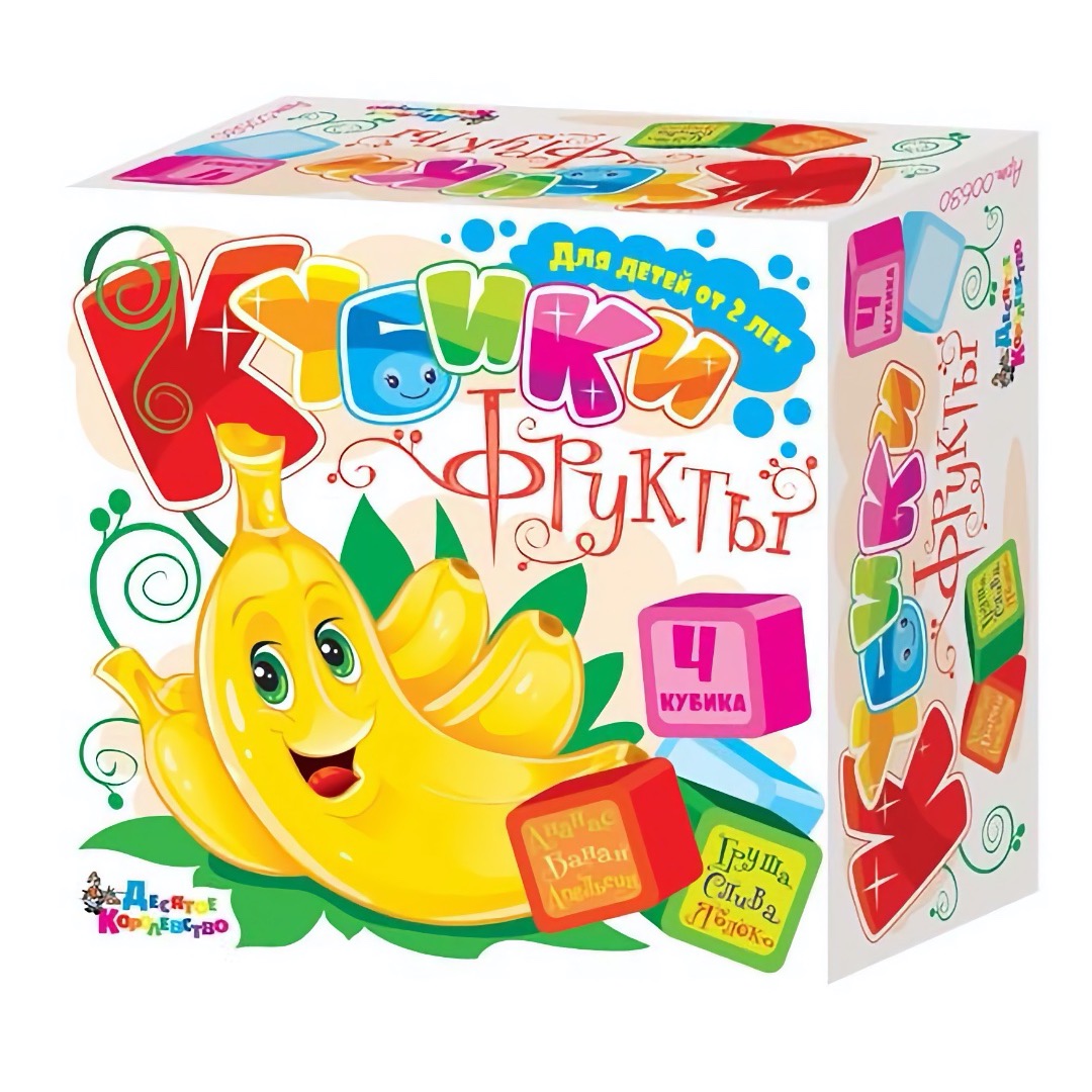 Артикул: 00630; Наименование: Кубики "Фрукты" (без обклейки) 4 шт; Штрихкод EAN-13: 4606088006307; Штрихкод EAN-14: 14606088006304; Количество штук в коробке: 36; Длина товара (см): 8,3; Ширина товара (см): 8,4; Пол: мальчики и девочки; Возраст: от 3-х лет до 5 лет; Вес нетто, кг: 0,05; Сертификат: BY 112 02.01.003 15763 №0070996; срок действия: 29.11.2023; Описание товаров: Набор кубиков Фрукты