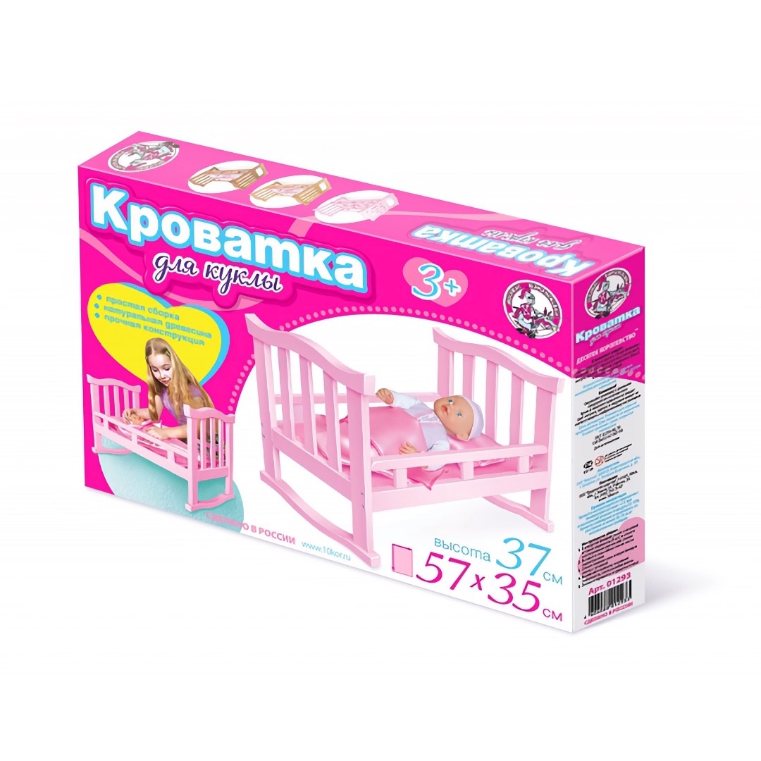 Артикул: 01293; Наименование: Кроватка деревянная для куклы большая; Штрихкод EAN-13: 4606088012933; Штрихкод EAN-14: 14606088012930; Количество штук в коробке: 5; Длина товара (см): 56; Ширина товара (см): 38; Пол: девочки; Возраст: от 3-х лет до 5 лет; Вес нетто, кг: 2,02; Сертификат: RU C-RU. ЛТ47.B.04259 №0629873; срок действия: 29.05.2021; Описание товаров: В такой кроватке может удобно разместиться кукла длиной 50 см и меньше.
