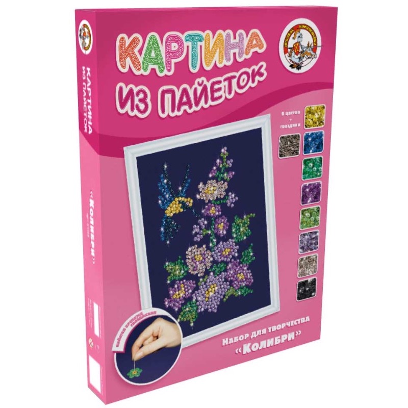 Набор для картины из паеток Колибри можно купить со скидкой в интернет магазине производителя Десятое Королевство и оформить доставку, не выходя из дома, в любой уголок России.; Изготовитель: ООО "Десятое королевство"; Страна происхождения: Россия; Материал: картон, пластмасса, металл; Лицензия: ; Количество игроков: ;