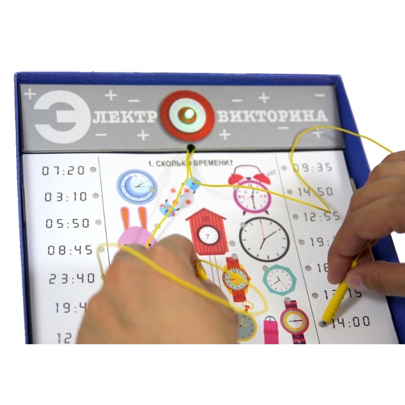 Артикул: 02843; Наименование: Игра Электровикторина "Учись играя!"; Штрихкод EAN-13: 4606088028439; Штрихкод EAN-14: 14606088028436; Количество штук в коробке: 5; Длина товара (см): 37; Ширина товара (см): 24,1; Пол: мальчики и девочки; Возраст: от 4 лет до 7 лет; Вес нетто, кг: 0,522; Сертификат: RU C-RU. ЛТ47.B.04240 №0629857; срок действия: 15.04.2021; Описание товаров: Эта развивающая игра включает в себя задания по следующим темам: время, цвета, транспорт, счет, алфавит, животные. Игроки научатся определять время на часах, соотносить часть и целое, различать цвета и оттенки, находить тени предметов по их форме. В процессе игры дети знакомятся с цифрами и отрабатывают навык устного счета.