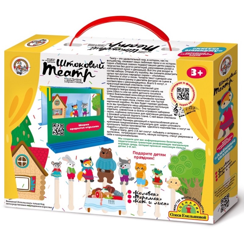 Набор подходит для постановки спектаклей «Колобок» , «Теремок» и «Кот и лиса» .