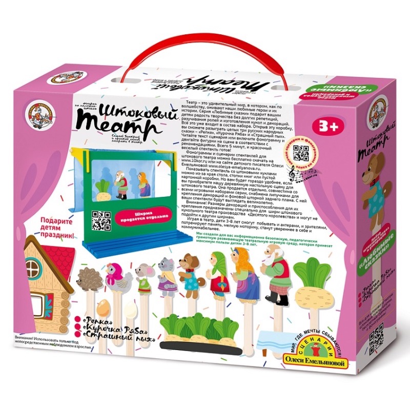 Артикул: 03680; Наименование: Штоковый театр. Набор кукол и декораций. Любимые сказки. "Репка", "Курочка Ряба", "Страшный Пых"; Штрихкод EAN-13: 4606088036809; Штрихкод EAN-14: 14606088036806; Количество штук в коробке: 14; Длина товара (см): 23,5; Ширина товара (см): 4,7; Пол: мальчики и девочки; Возраст: от 3 лет; Вес нетто, кг: 0,213; Сертификат: RU C-RU. ЛТ47.B.04257 №0629871; срок действия: 29.05.2021; Описание товаров: Устроить настоящее театральное представление у себя дома совсем не так сложно, как может показаться на первый взгляд. Представления со штоковым театром от «Десятого королевства» не только доставят детям радость, но и создаст общую творческую атмосферу.