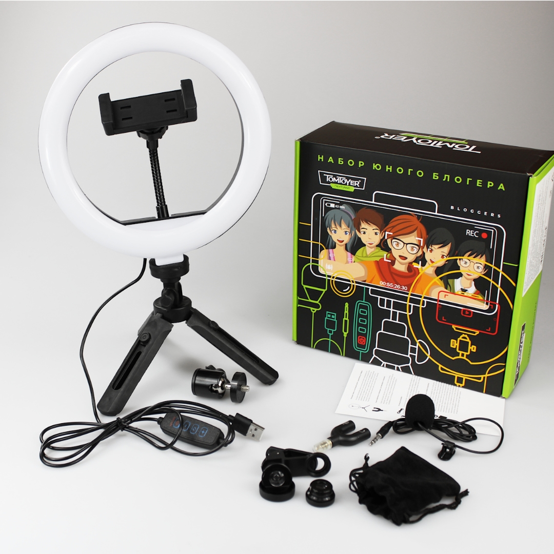 • кольцевая светодиодная лампа с регулируемым освещением – 1 шт. (диаметр – 20 см)