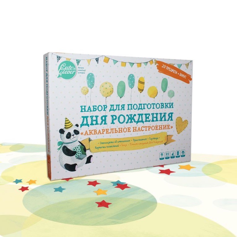 Набор для подготовки Дня Рождения. "Акварельное настороение" (24 предмета)