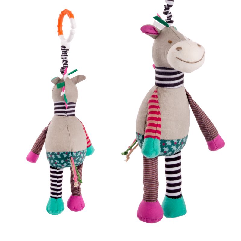 Игрушки серии «Эко» выбирают родители, которые отдают предпочтение только натуральным материалам. Игрушка выполнена из натуральных тканей разных по фактуре и цвету. Лошадка Лулу имеет разжимное кольцо, с помощью которого ее легко прикрепить к коляске, автомобильной люльке. Малышу не будет скучно в дороге. Ребенок может познакомиться с гладкими, шуршащими и рельефными элементами, а значит развить тактильные и слуховые навыки, трогая их. Лошадка Лулу имеет имя, которое легко запоминается и произносится, что важно для ребенка постарше.