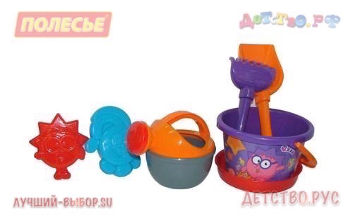 Ведро среднее с наклейкой, ситечко, лопатка №5, грабельки №5, 2 формочки большие, лейка малая №4