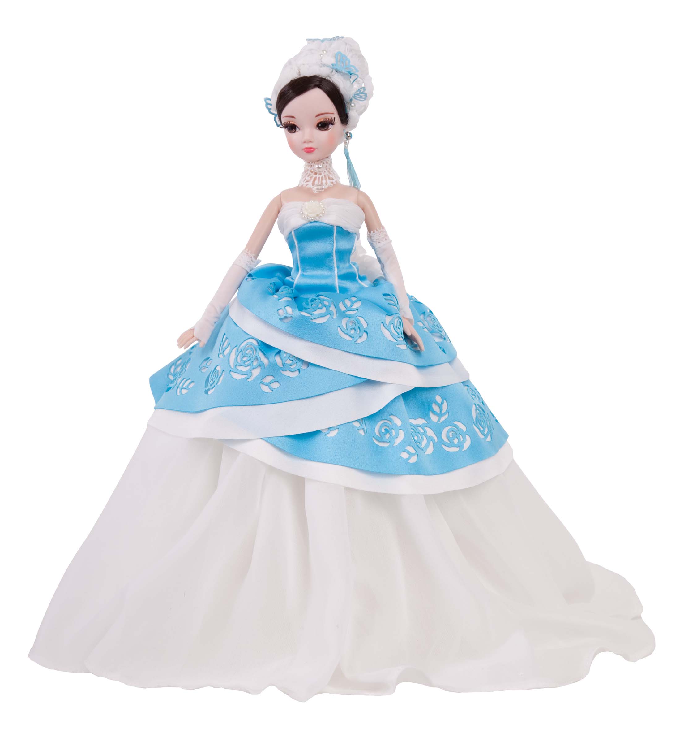 «Золотая коллекция» кукол Sonya Rose от известного бренда «Sonya Rose» - серия удивительно красивых, утонченных девушек в шикарных вечерних туалетах, сшитых, словно для сказочного бала! «Голубая лагуна» – это изумительный бальный наряд куклы, состоящий из пышной внутренней белой юбки и укороченной верхней небесного цвета с цветочной вырезкой-рисунком и белой каймой.