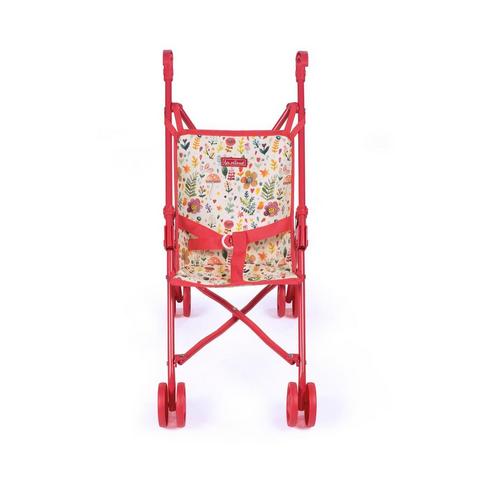 Коляска-трость из серии "Валерия" выполнена в ярких цветах: растительный акварельный узор сочетается с красной окантовкой.