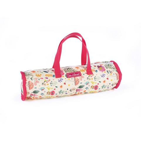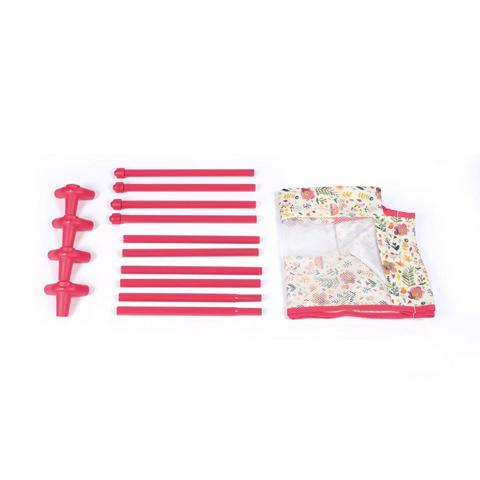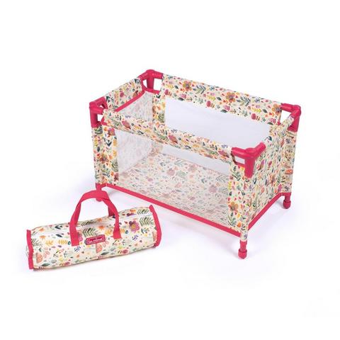 Походная кроватка-манеж для кукол из серии "Валерия" с ярким акварельным узором и красной отделкой. Кроватка полностью разборная, убирается в небольшую сумочку.