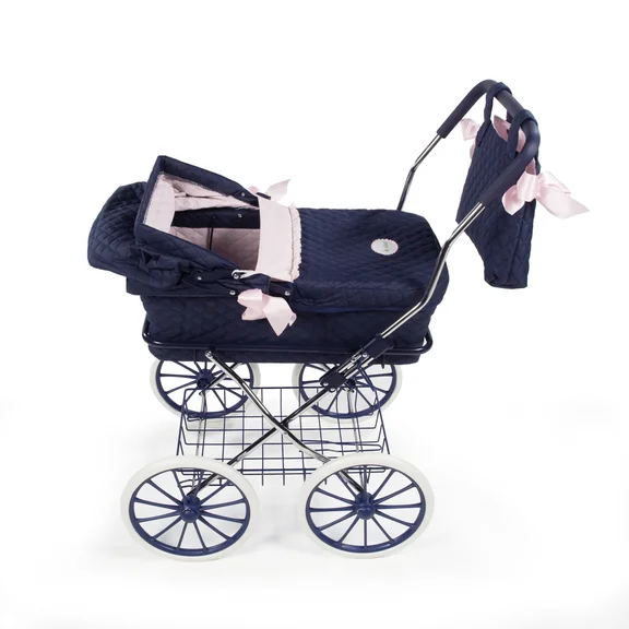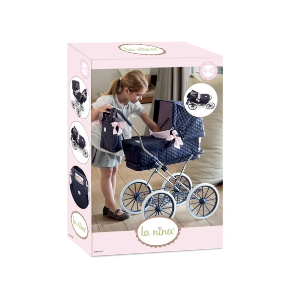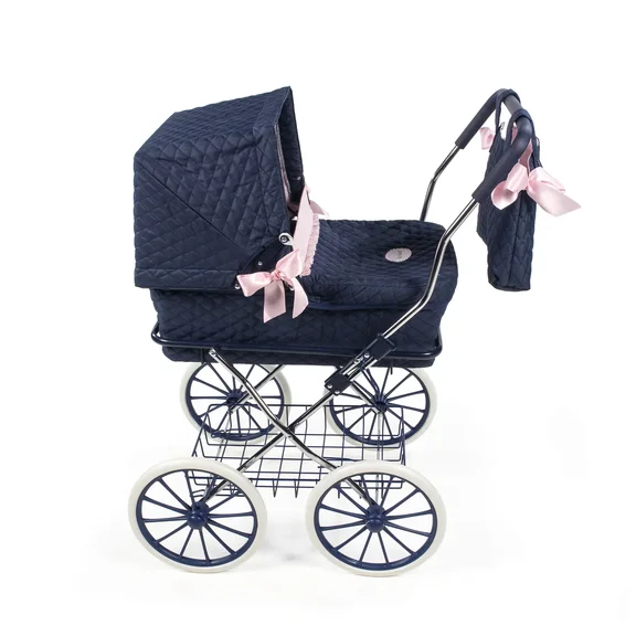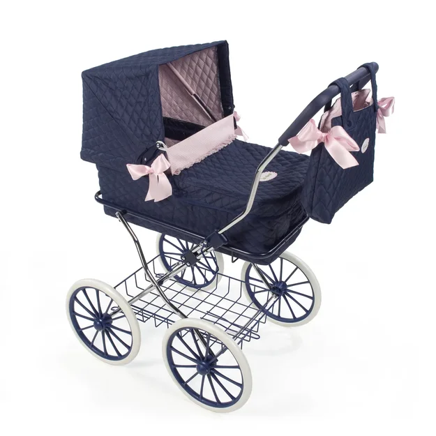 Очень красивая коляска для кукол-младенцев с люлькой в ретро стиле с большими колесами, высота ручки 83 см.