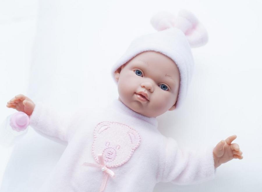 Вес в упаковке (г) 250Малышка Гугу одета в розовый флисовый комбинезон с медвежонком и такую же шапочку.