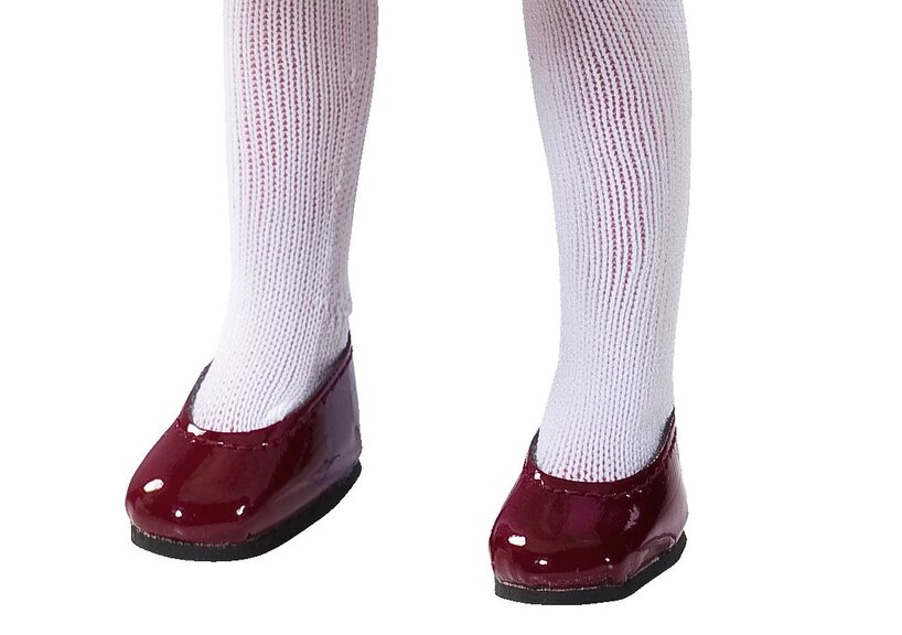 Волосы длинные, густо прошитые, приближены по качеству к натуральным. Куклу можно расчесывать и менять ей прически, дизайнеры позаботились о дополнительном аксессуаре в виде резинки для волос.