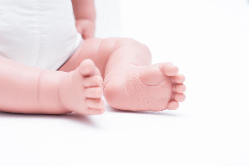 У Лео нет волос, но есть натуральные реснички. Голубые глазки, розовые полуоткрытые губки, румянец - все выглядит настолько натурально, что у вас создается впечатление, что перед вами настоящий малыш.