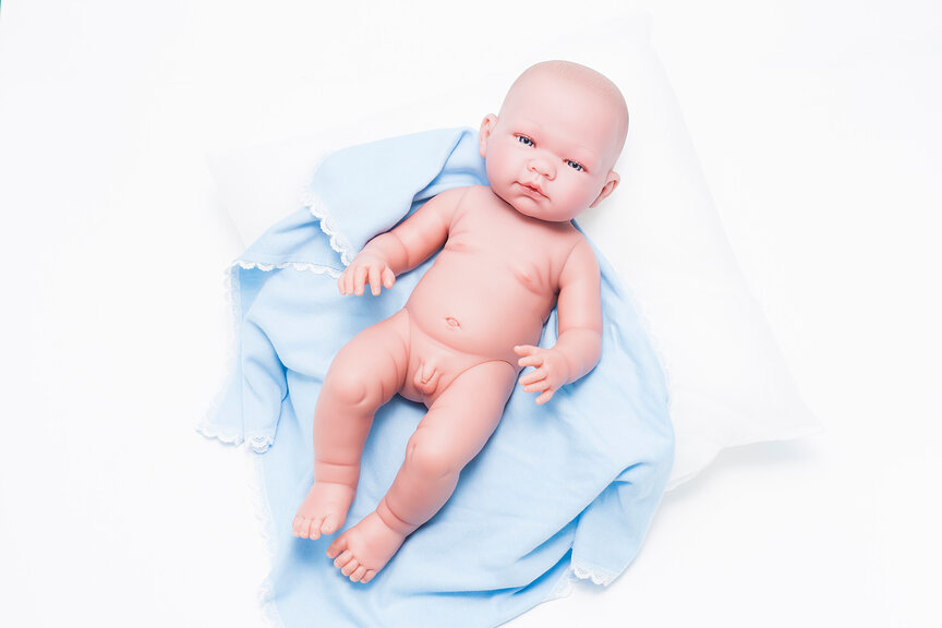Младенец выполнен с детальной точностью всех физиологических особенностей новорожденных малышей. Ручки, ножки, пухленькие пальчики, крошечные ноготки, прелестные детские складочки, ямочки на коленках - точная копия грудничка.