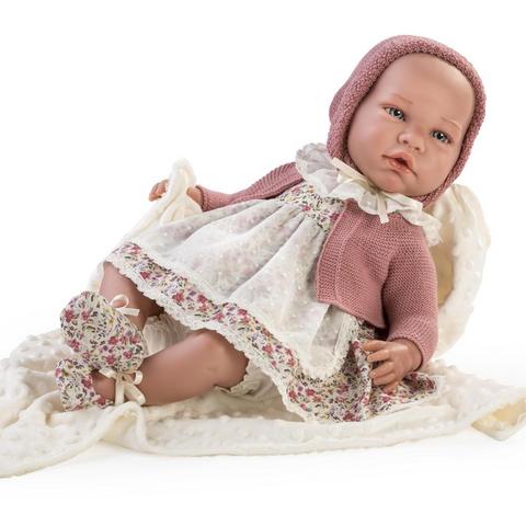 У нежной малышки Кайетана блестящие голубые глаза, длинные пушистые реснички и приоткрытый пухленький ротик. Рост, как у новорожденного, составляет 46 см.