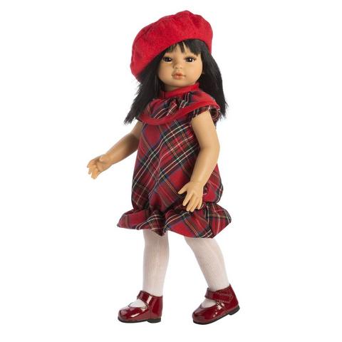 Черные, как смоль волосы этой куколки распущены. Куколка Каори одета в модное красное клетчатое платье, берет, белые колготы и лаковые туфельки в цвет.