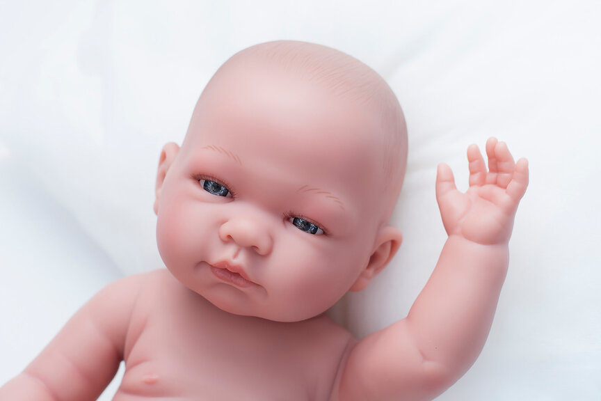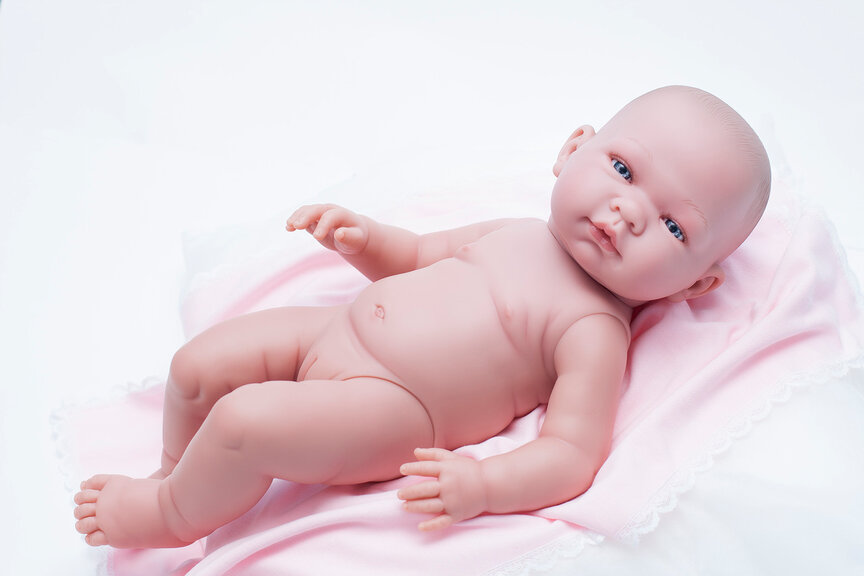 Младенец выполнен с детальной точностью всех физиологических особенностей новорожденных малышей. Ручки, ножки, пухленькие пальчики, крошечные ноготки, прелестные детские складочки, ямочки на коленках - точная копия грудничка.