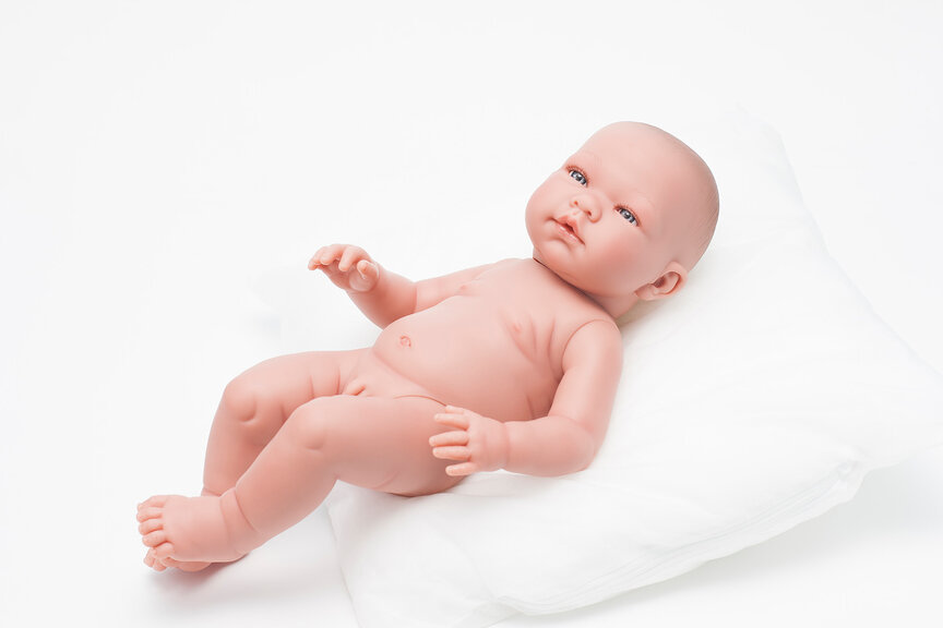 Младенец выполнен с детальной точностью всех физиологических особенностей новорожденных малышей. Ручки, ножки, пухленькие пальчики, крошечные ноготки, прелестные детские складочки, ямочки на коленках - точная копия грудничка.