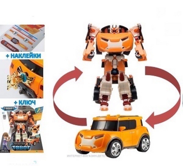 - Любой ребенок без особого труда сможет превратить яркого оранжевого робота в реалистичную машинку, активировав трансформацию с помощью ключа из комплекта.